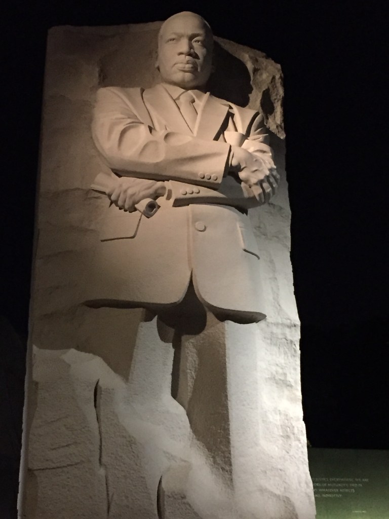 When I took the photo above with my iPhone during a nighttime tour of the United States Monuments in Washington, I remember reflecting on the continued challenges that confront us on racial respect, resolution, and reconciliation. My wife reflected on the fact that the monument was designed to be unfinished as a reminder that racial equality is still a work in progress. I will not solve the problem. However, I am determined to be a part of the solution. I read these words to myself out loud today.